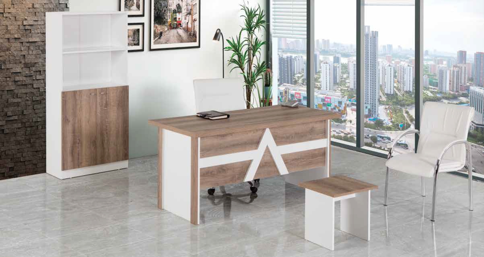 750 mm genişlik, 1650 mm yükseklik ve 350 mm derinlikteki kitaplık, ofisinizde düzeni ve depolama kapasitesini artırır. 450 mm genişlik, 400 mm yükseklik ve 420 mm derinlikteki sehpa ise ofisinize tamamlayıcı ve pratik bir kullanım alanı sağlar.