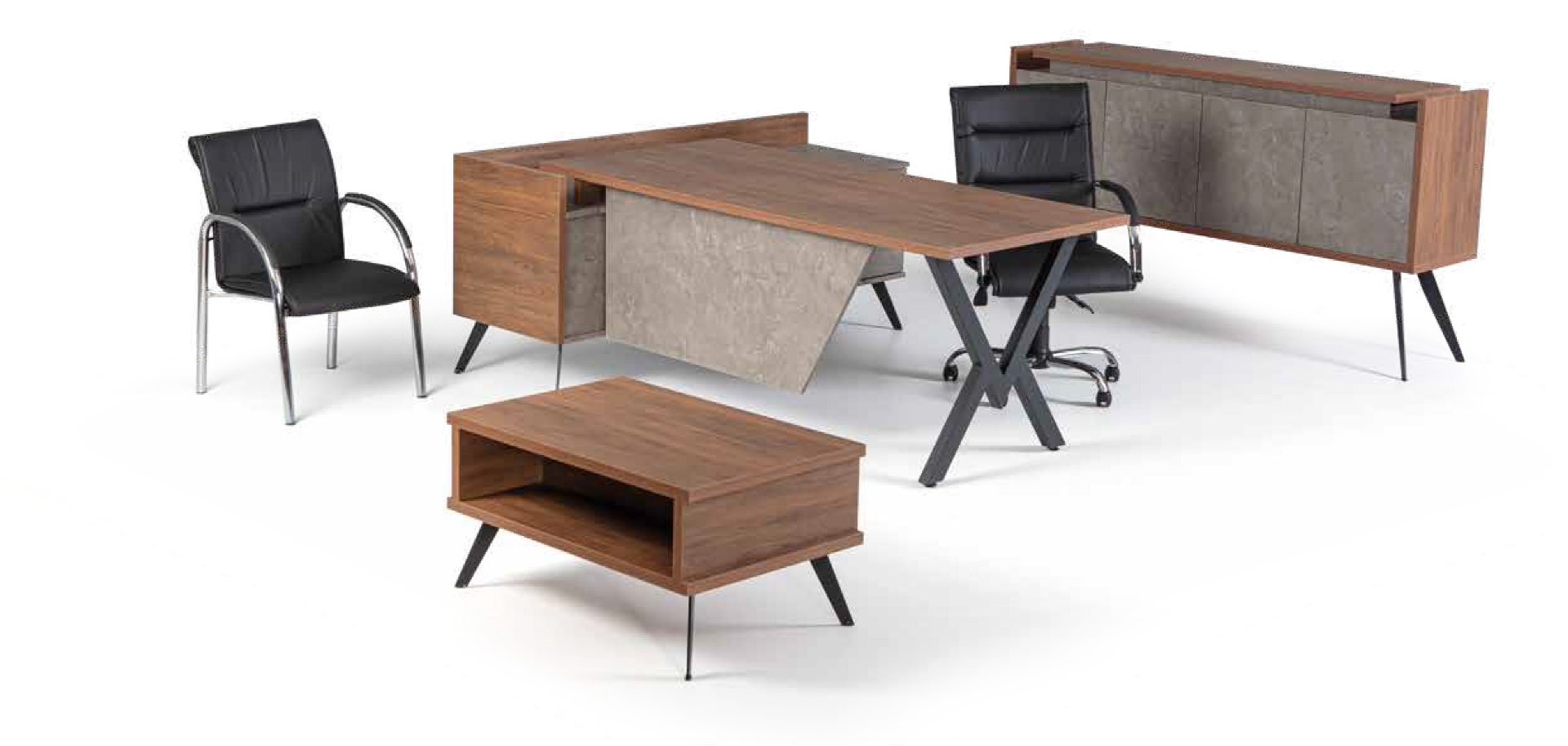 780 J Geo Makam Masa Takımı, yenilikçi tasarımı ve kaliteli malzemeleriyle Konya ofis mobilyaları arasında öne çıkıyor. Takım; geniş ve kullanışlı makam masası, fonksiyonel konsol ve modern sehpadan oluşur. Dayanıklı yapısı, estetik detayları ve ergonomik tasarımıyla ofisinizde hem şıklık hem de verimlilik sağlar. Yönetici ve makam odaları için ideal bir tercihtir.